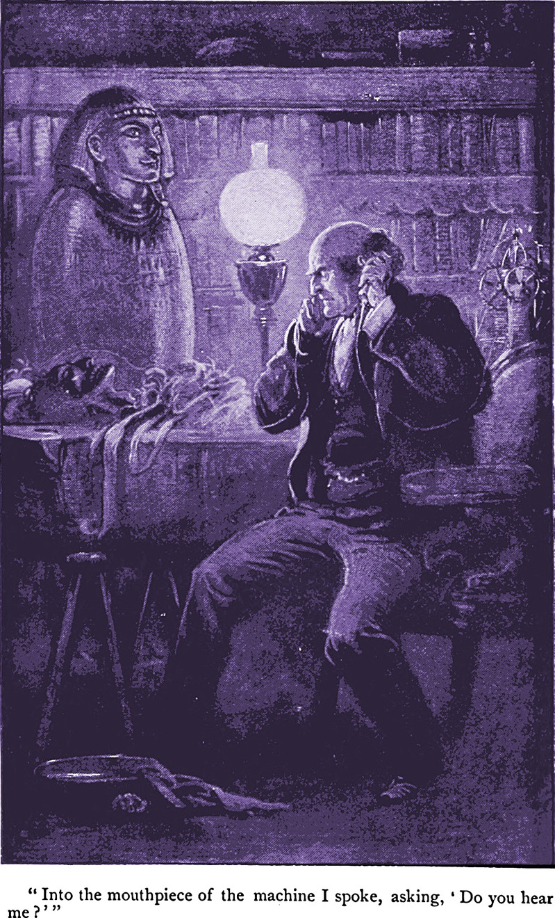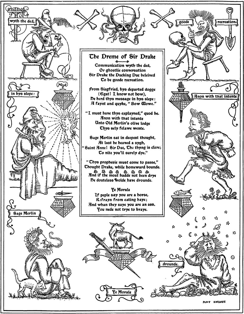 This recalls our repository of ghostly images that were never meant to be, entitled The Ghost in the [Scanning] Machine. The specters were conjured unwittingly, through a mechanical process of book scanning. Their portraits technically do not exist, except within this context. To explain: in old books, frontispieces were typically protected by a sheet of translucent tissue paper. So thorough is the Google Books scanning process that even this page of tissue paper is scanned. The figure in the plate beneath the tissue—"beyond the veil,” as it were—emerges as from a foggy otherworld. The frontispieces were never meant to be seen this way. Their wraithlike manifestations have been artificially "fixed" in time by the scanning process. In essence, timeless phantasms of dead writers have been captured and bound into a new age. And so we call this phenomenon "unforeseen art," as it constitutes an aesthetic expression without original intent. Just as artists often credit their inspiration to a Muse, the accidental art herein is in the domain of real ghosts; every author here has departed to the Other Side. We call it "necromancy by proxy," as the scanning machine serves as our "spirit medium" or shaman.
