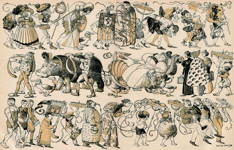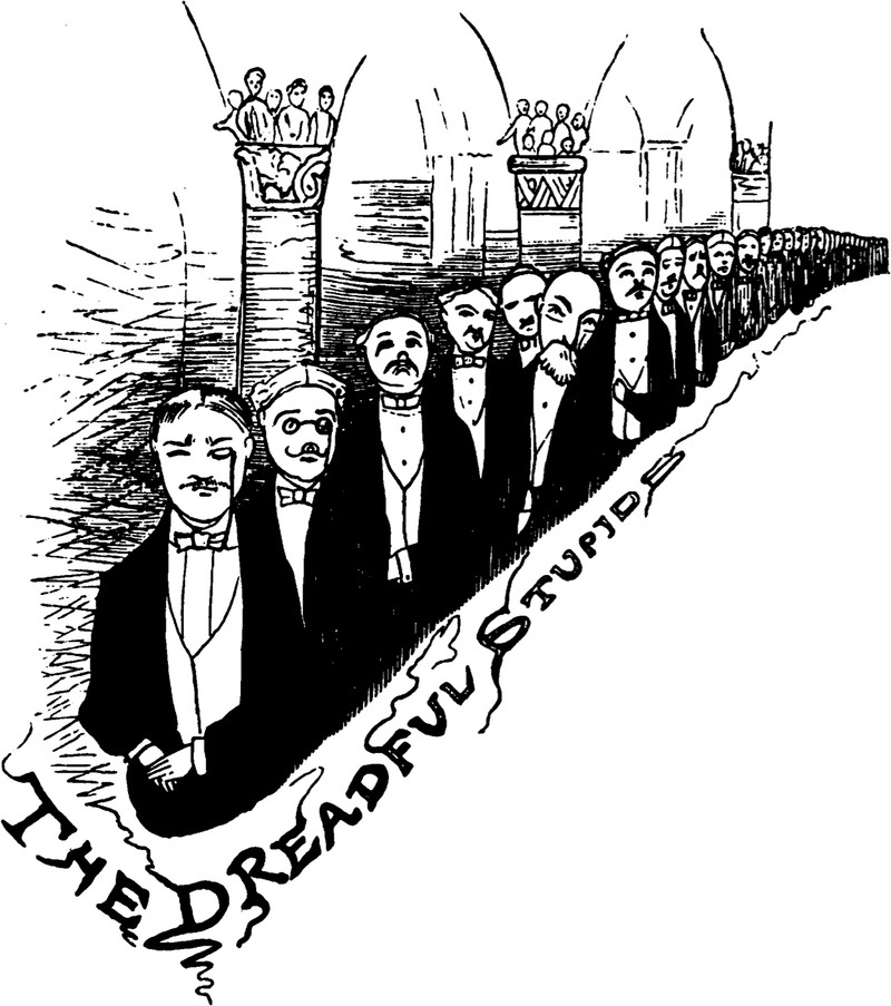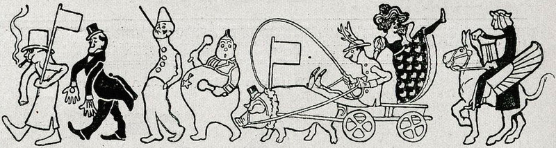 Hypnotized to dance in procession. From Hypnotism As It Is by Xenophon LaMotte Sage, 1900.