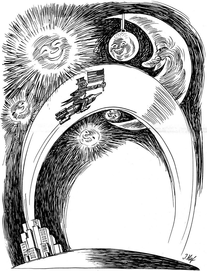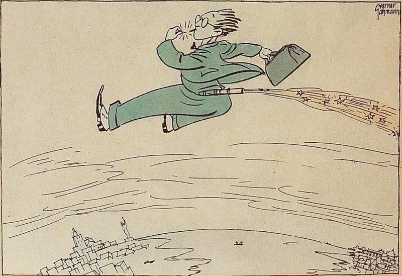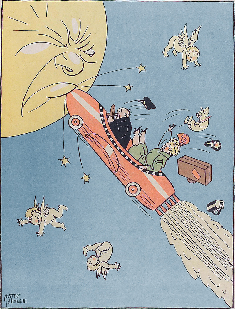 "Sailing by the moon." From The King of Gee-Whiz by Emerson Hough and illustrated by Oscar E. Cesare, 1906.