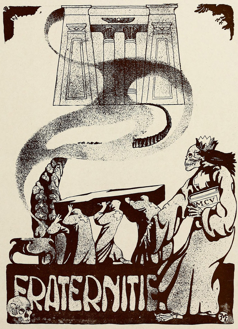 #vintage illustration #coffin #fraternity #vintage yearbook #yearbook #secret society #illustration #1910s
