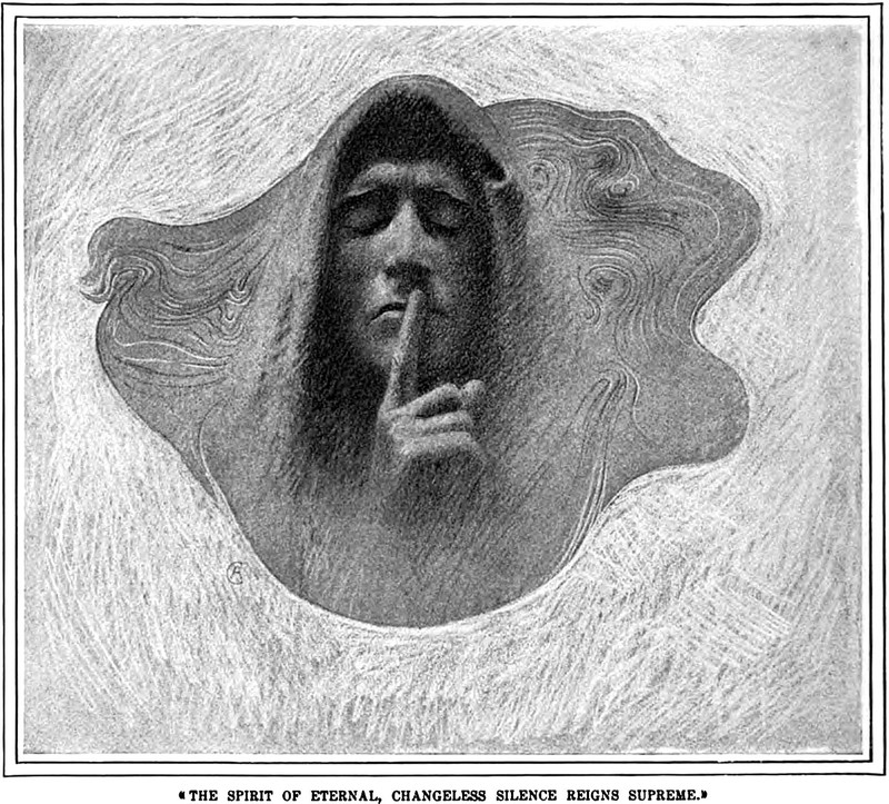 An illustration from an 1897 issue of Century Illustrated magazine. The caption reads: "The spirit of eternal, changeless silence reigns supreme."