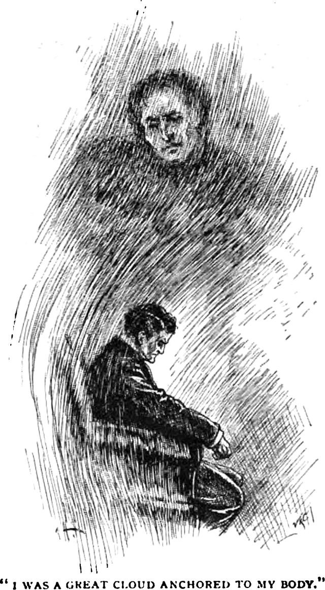 An illustration from an 1898 issue of The Strand magazine.  The caption reads: "I was a great cloud anchored to my body."