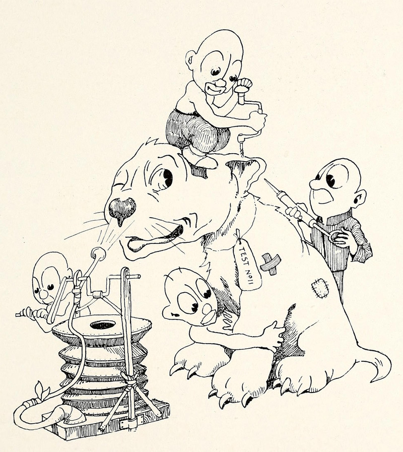 #vintage illustration #mad scientist #dog #doctor #vintage yearbook #tested on animals