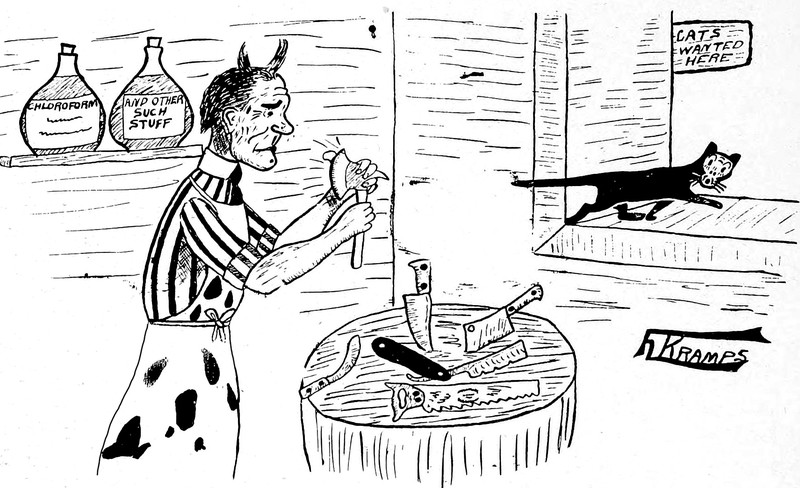 #vintage illustration #devil #mad scientist #cat #vintage yearbook #animal experimentation #cruelty to animals