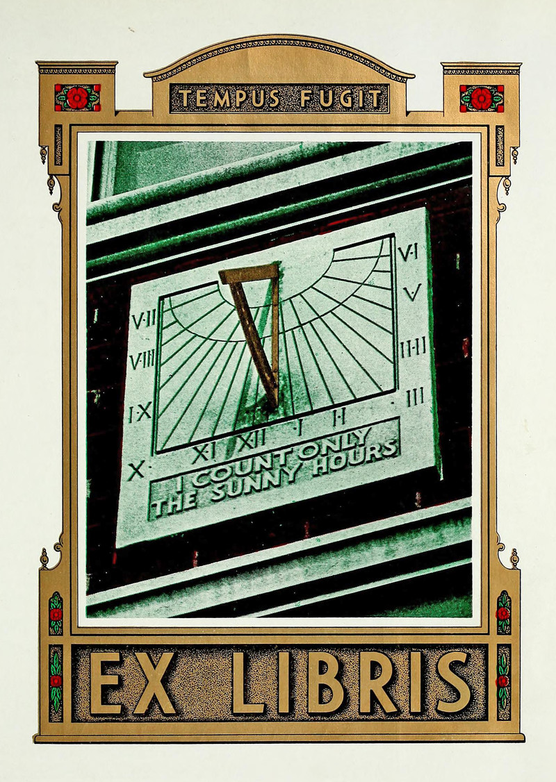 "Sun dials and moon dials are approved, as they mark the bright hours only." From The Lover's Baedeker and Guide to Arcady by Carolyn Wells and illustrated by A. D. Blashfield, 1912.