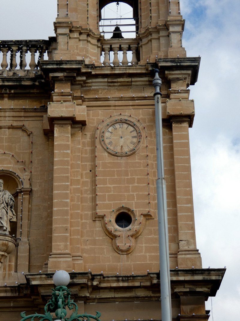 Temporal anomaly investigator Linda De Volder reports that "many of the Maltese churches [like this one, St Joseph's] have two clocks, showing different times. We were told one shows the correct time for the religious locals, while the other shows the wrong time to confuse Satan from disturbing the mass. Sometimes the second clock is not even real but a very good likeness painted on the church. Or the hands on the fake clock are missing."