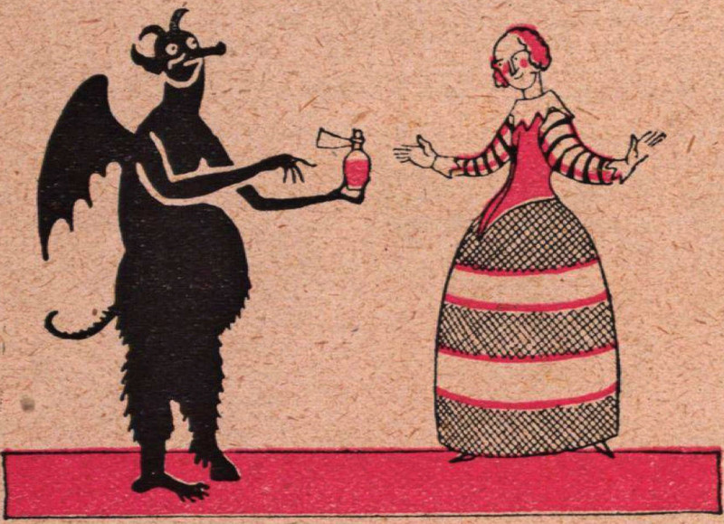 The central figure is perhaps wondering, "So it's snakes, wings, and fire on the one side, and what's the other side promising again?" From The New England Primer by Heman Humphrey, 1830. Speaking of which, what exactly are a snowball's chances in hell? See A Snowball's Chance in Hell.