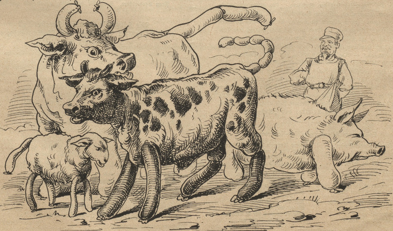 Here's a dress made of salad, from Punch, 1878. "See, there's endive, and lettuce, and spring onions, and radishes, and beetroot." Nothing wanting, except "perhaps a little more dressing, my dear!"