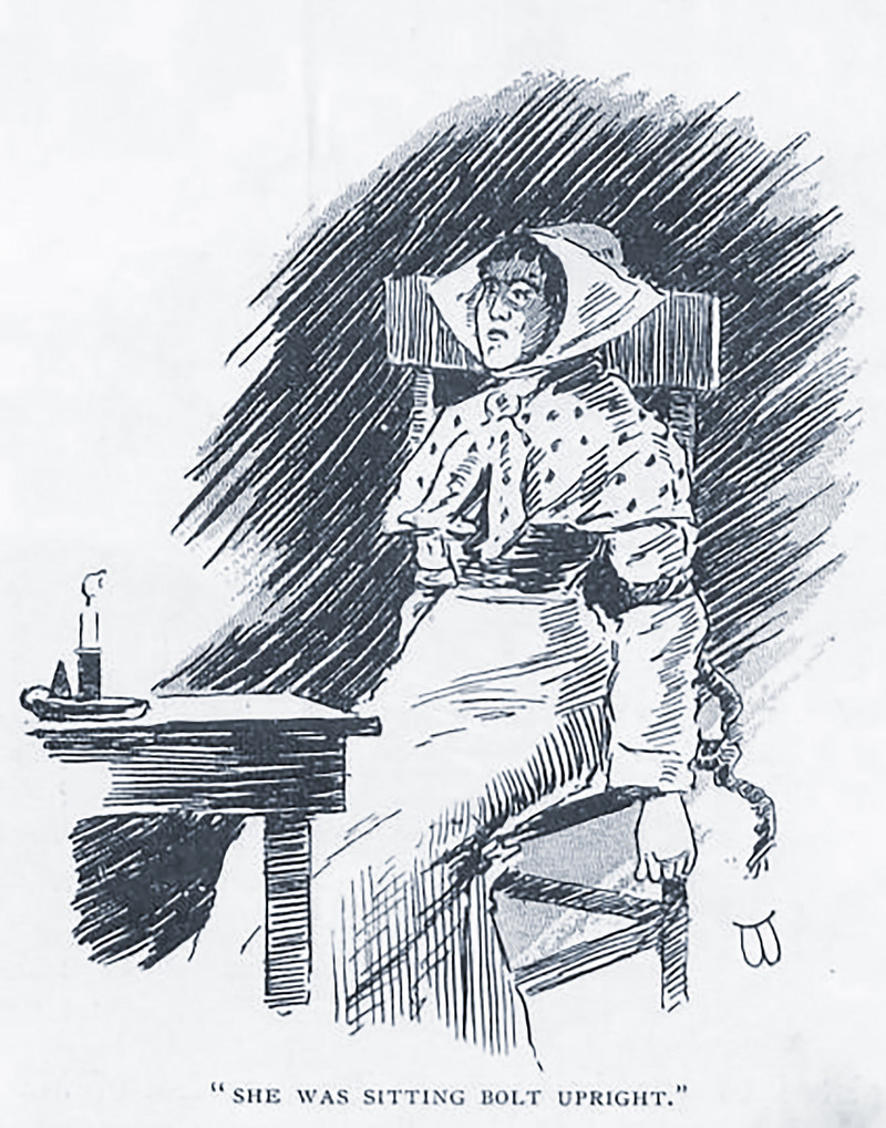 "She was sitting bolt upright."  From The Strand, 1894.