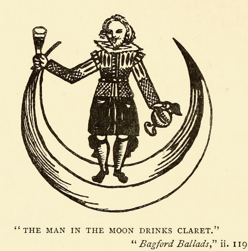 "The Man in the Moon drinks claret." From Moon Lore by Timothy Harley, 1885.