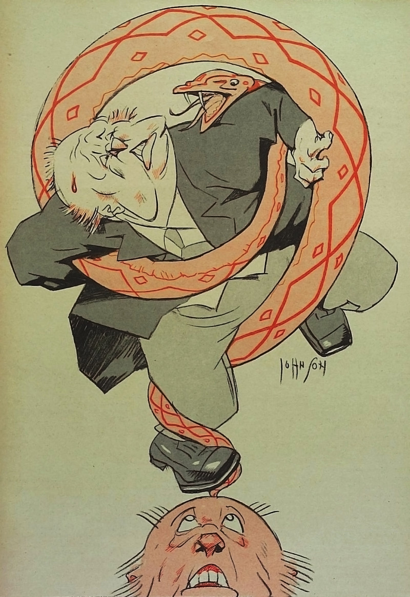 A sea-serpent signs a contract. From Judge's Library, 1904.