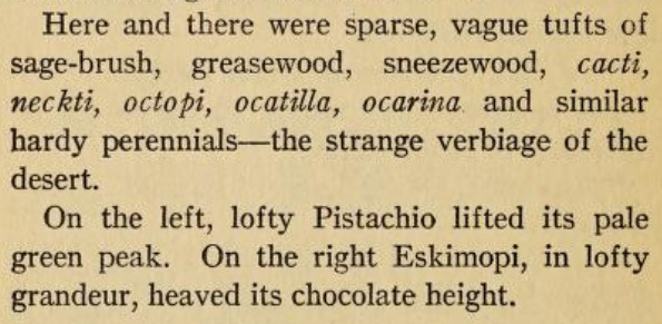 *** Two great dreaming towers towered toward the sky, like a gigantic pair of white flannel trousers, reversed.