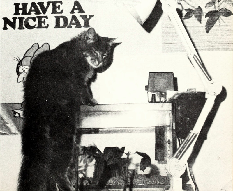 #vintage illustration #cat #fishtank #fishing #fish tank #1980s