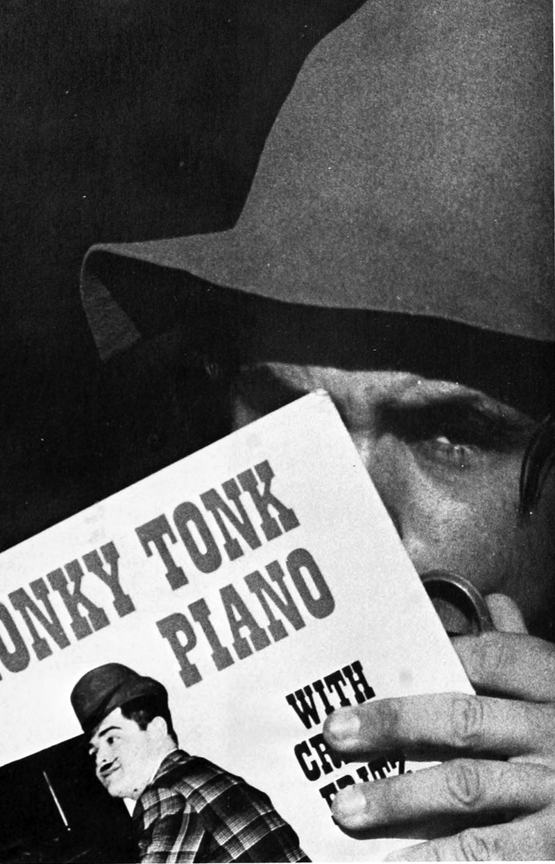 He's hiding behind "More Honky Tonk Piano with Crazy Fritz."  From Kent State's 1969 yearbook.
