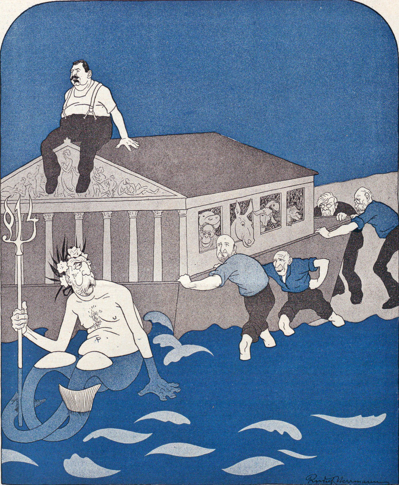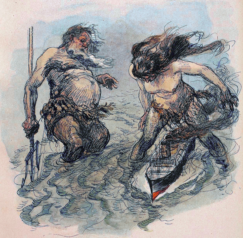 King Neptune gets his kicks by making sailors sick. From Jugend, 1904.