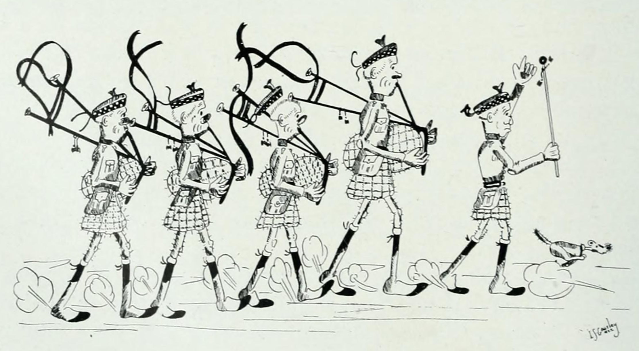 #vintage illustration #vintage yearbook #yearbook #1920s #bagpipes #musician #illustration #marching band