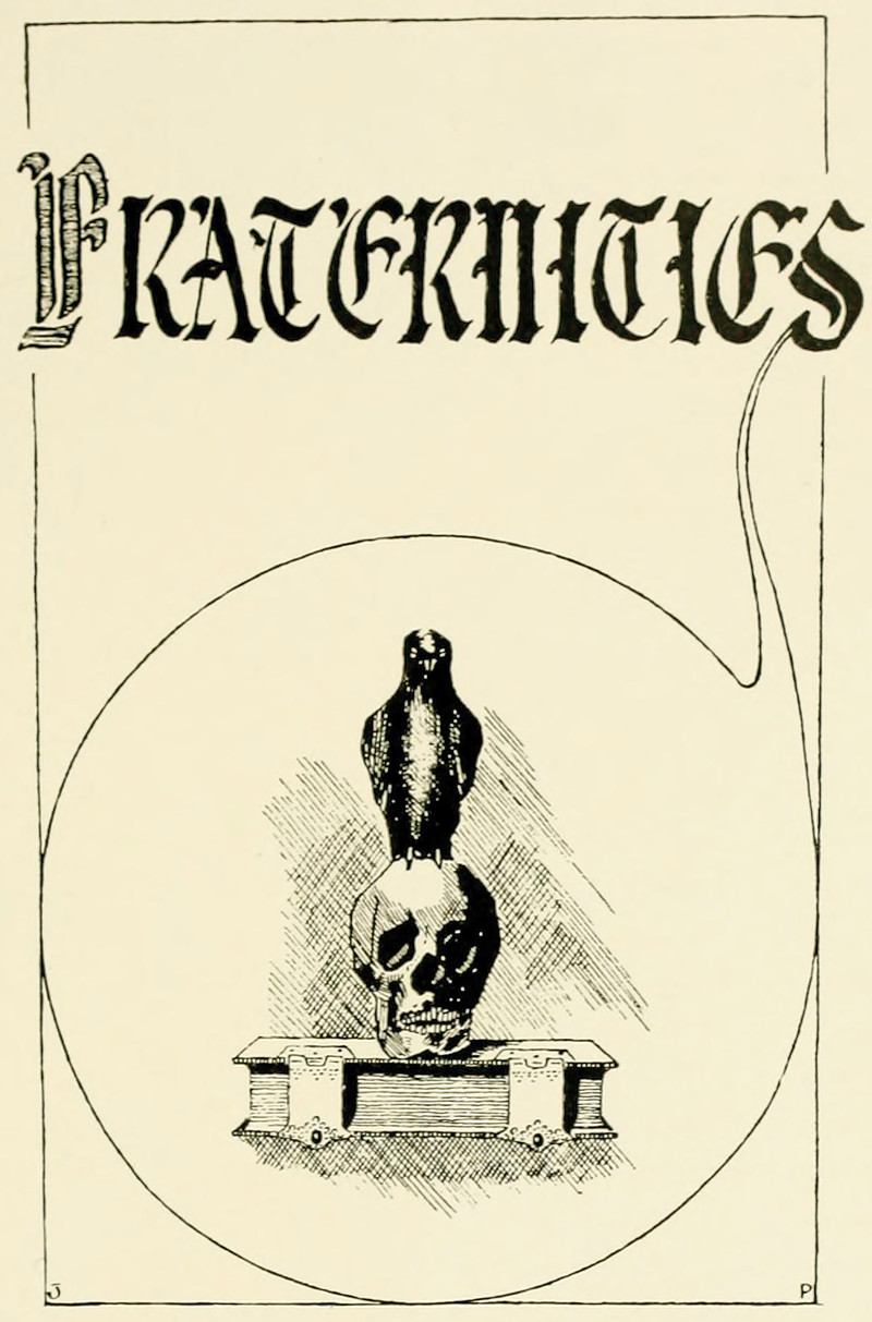 #vintage illustration #skull #crow #fraternity #vintage yearbook #yearbook #1920s #illustration