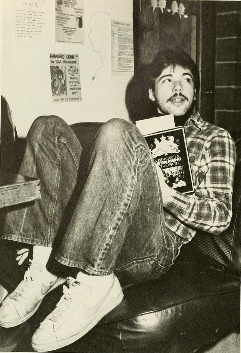 Every contract should specify a separate microphone for the dummy, because if you don't believe in your ventriloquism act all the way, the audience won't, either. From Biola University's 1982 yearbook.