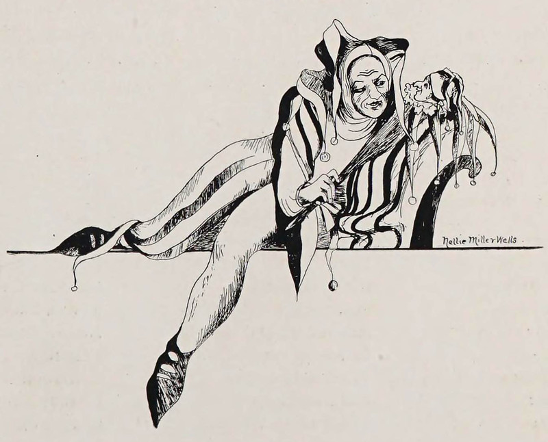 #vintage illustration #jester #vintage yearbook #yearbook #marotte #1920s #illustration