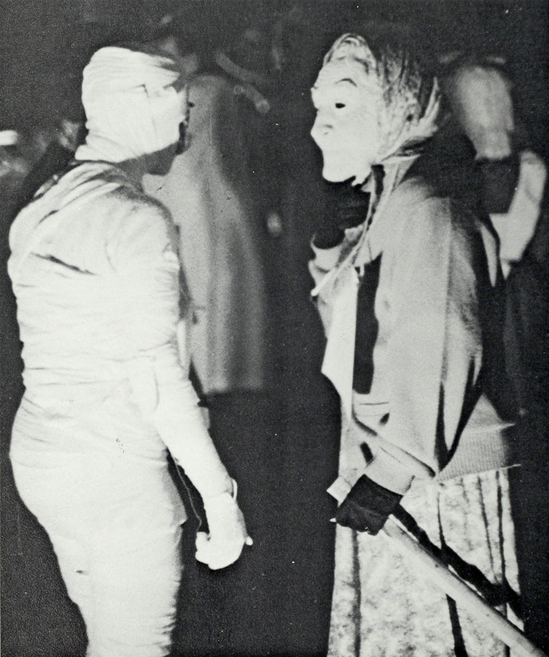 These are faculty members. Note that the man in the middle has a witch eye (the eye to our left). From Olivet Nazarene's 1959 yearbook. See How to Hoodoo Hack a Yearbook.