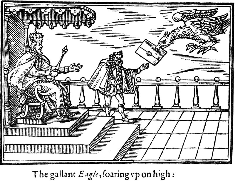 Originally, the E of e-mail stood for eagle. From What Was the Gunpowder Plot by John Gerard (1897). The caption reads: "The gallant Eagle, soaring up on high."