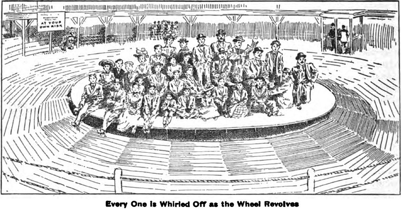 We thought it was an umbrella like a merry-go-round, but it's the other way around. From Illustrated World, 1920.