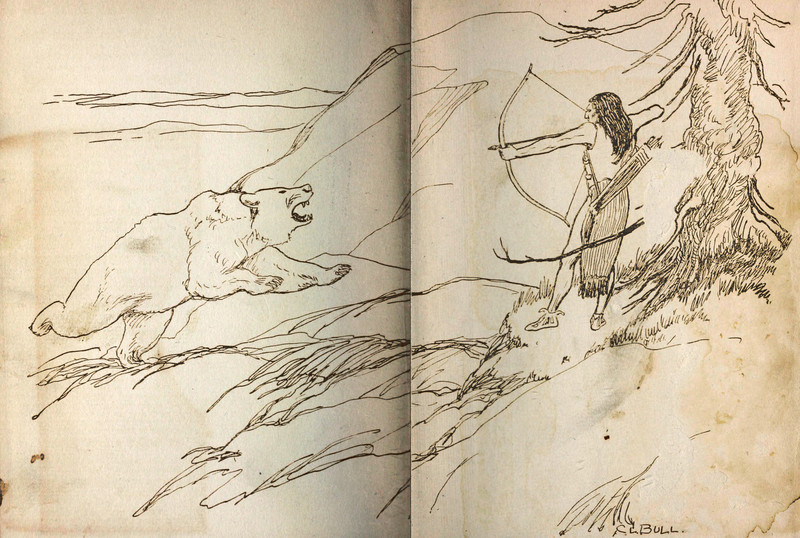 #vintage illustration #bear #native american #hunter #endpapers