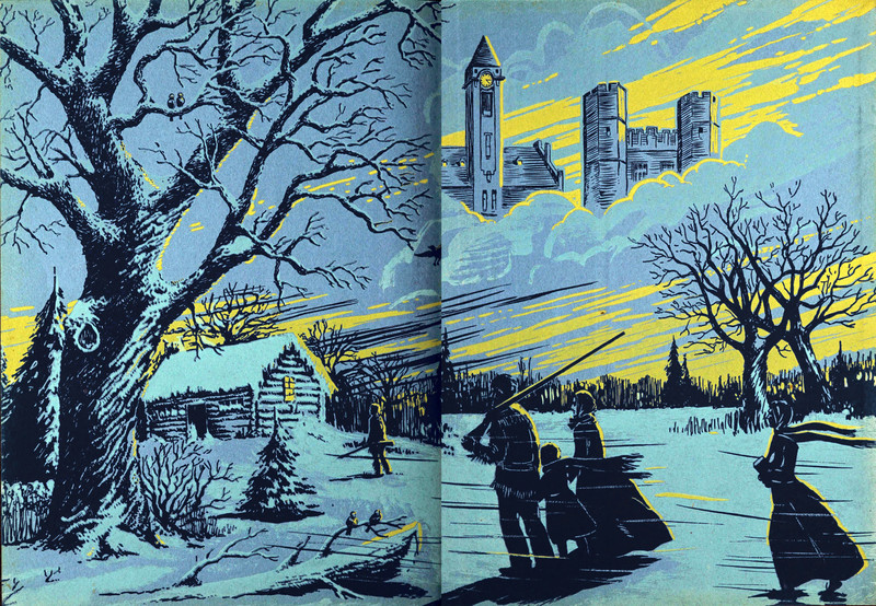 #vintage illustration #vintage yearbook #yearbook #endpapers #illustration #castle in the air