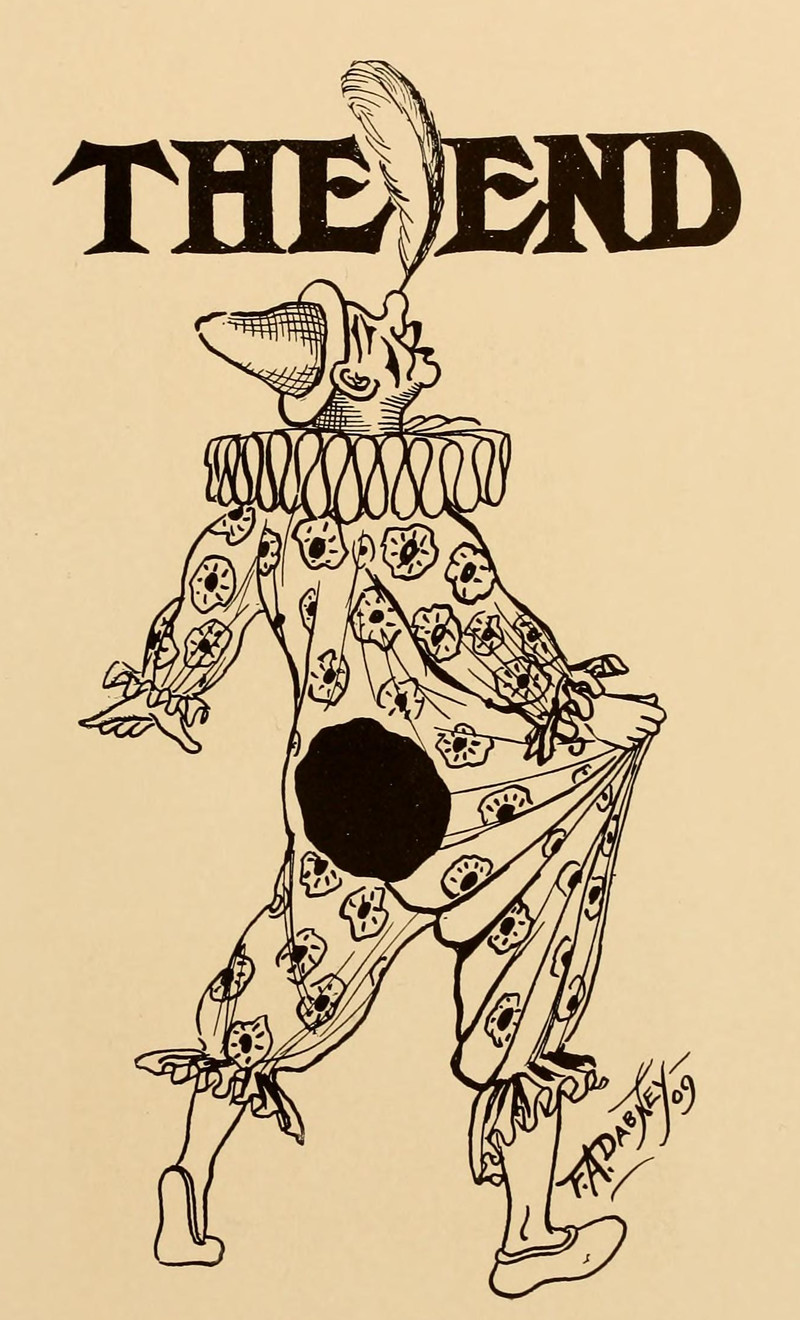 #vintage illustration #balancing act #clown #vintage yearbook #feather #yearbook #the end