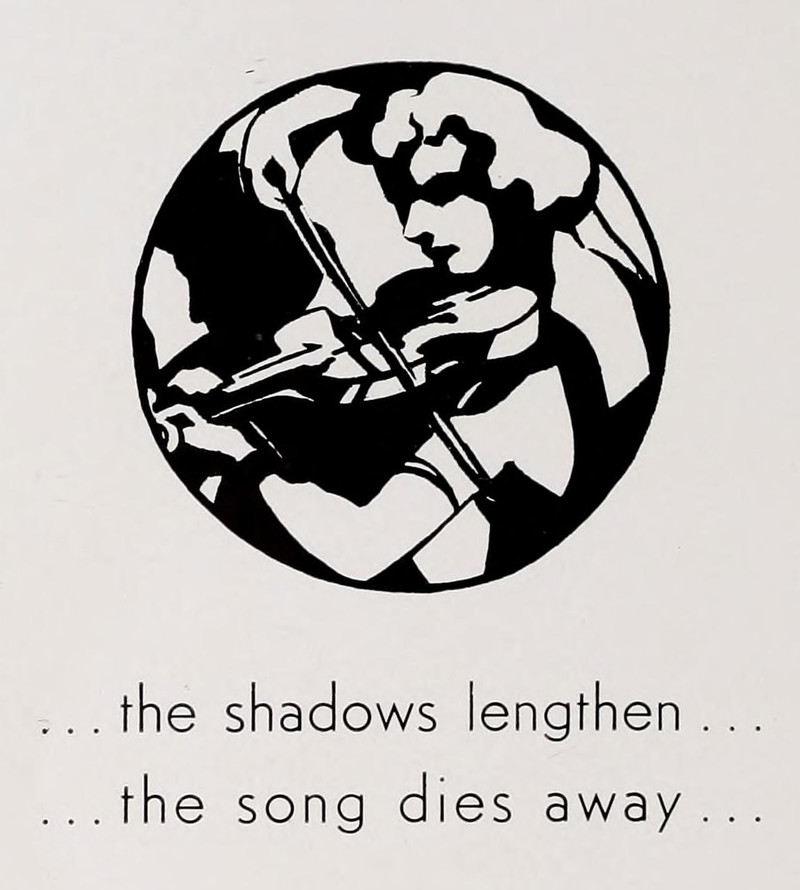 "The shadows lengthen ... the song dies away."  From MacMurray College's 1938 yearbook.