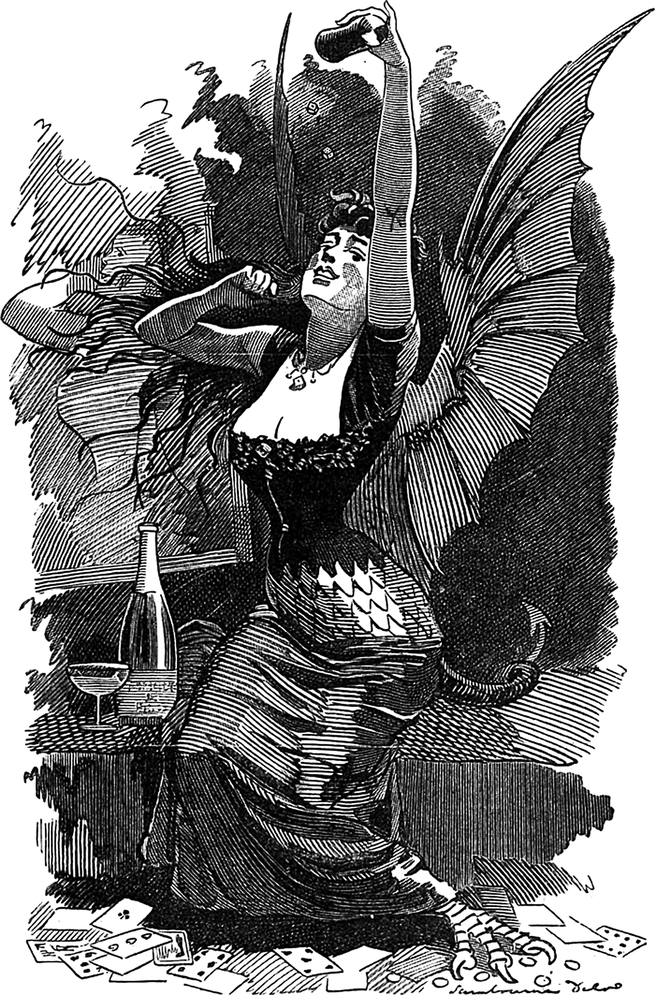 #vintage illustration #demon #dragon #gambling #lady luck #harpy #illustration #1880s