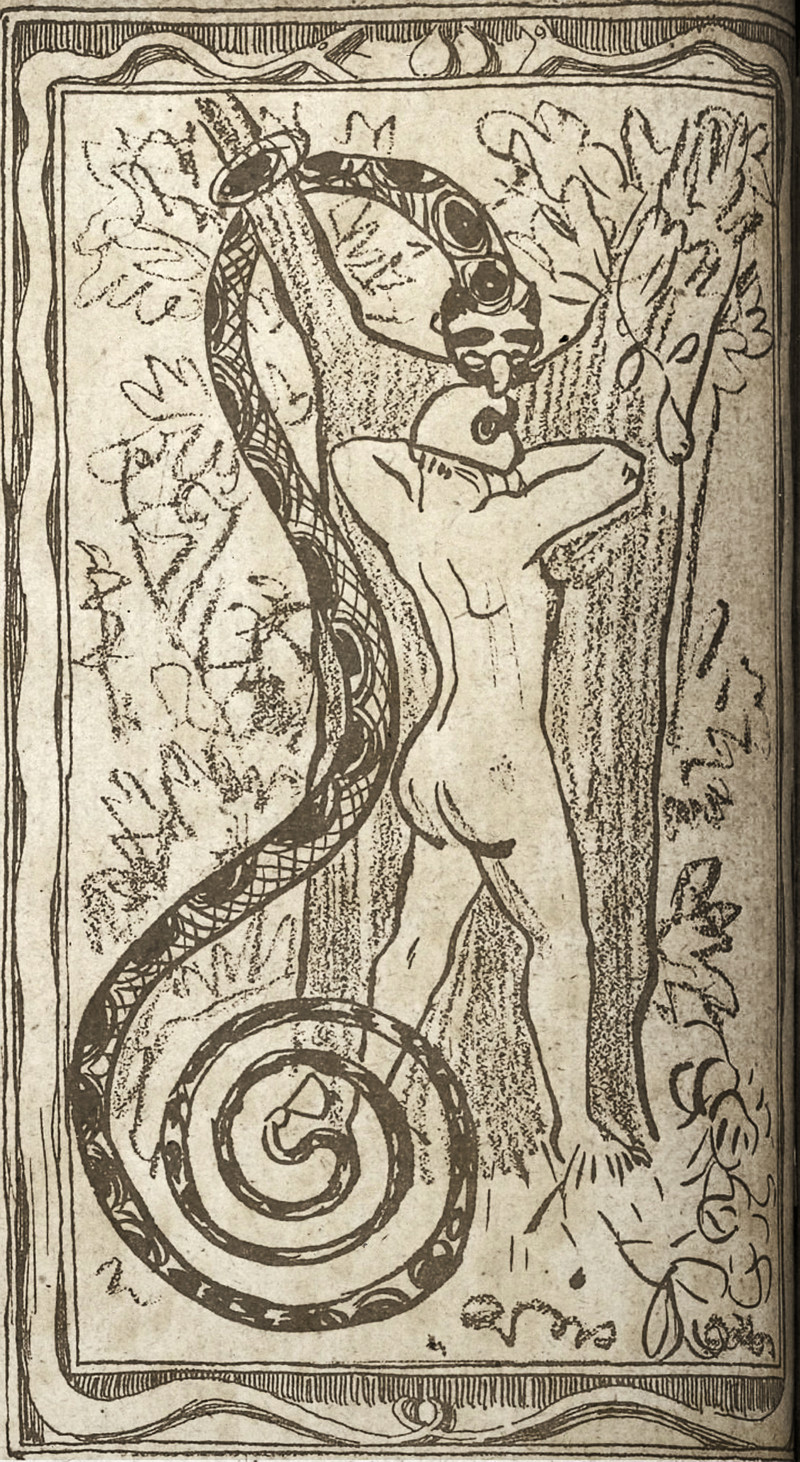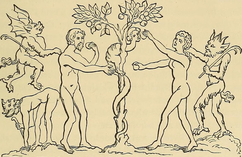 Why won't Adam eat from the apple of the knowledge of good and evil while he's reading? "There is no such thing as a moral or an immoral book. Books are well written or badly written. That is all" (Oscar Wilde, The Picture of Dorian Gray). From Jugend, 1911.