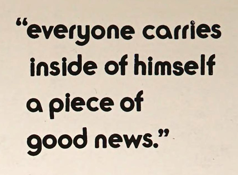 "Everyone carries inside of himself a piece of good news."  From La Roche College's 1975 yearbook.