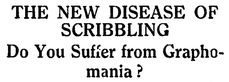 "The new disease of scribbling.  Do you suffer from graphomania?"  From The Children's Newspaper, 1921.