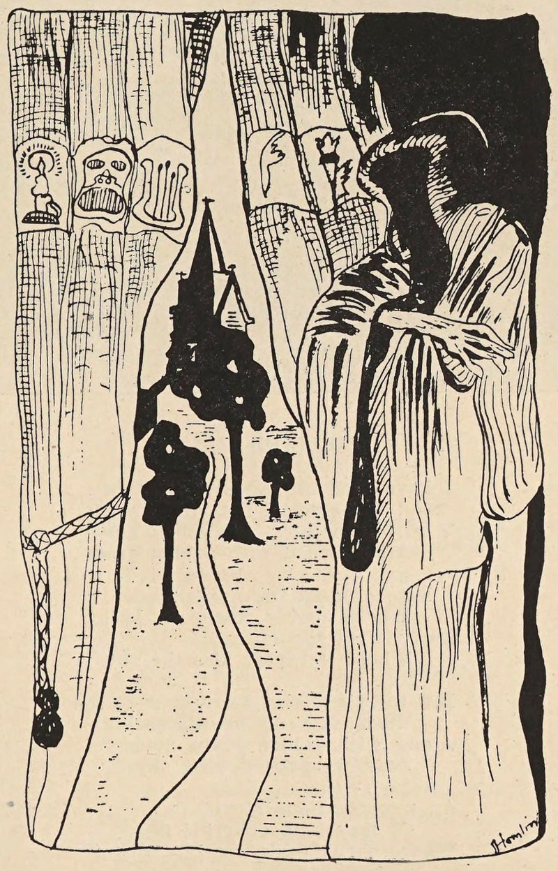 #vintage illustration #horror #vintage yearbook #yearbook #hooded figure #1930s #illustration