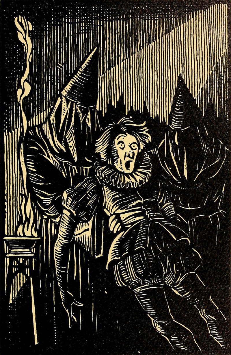 #vintage illustration #suspense #hooded figure #illustration