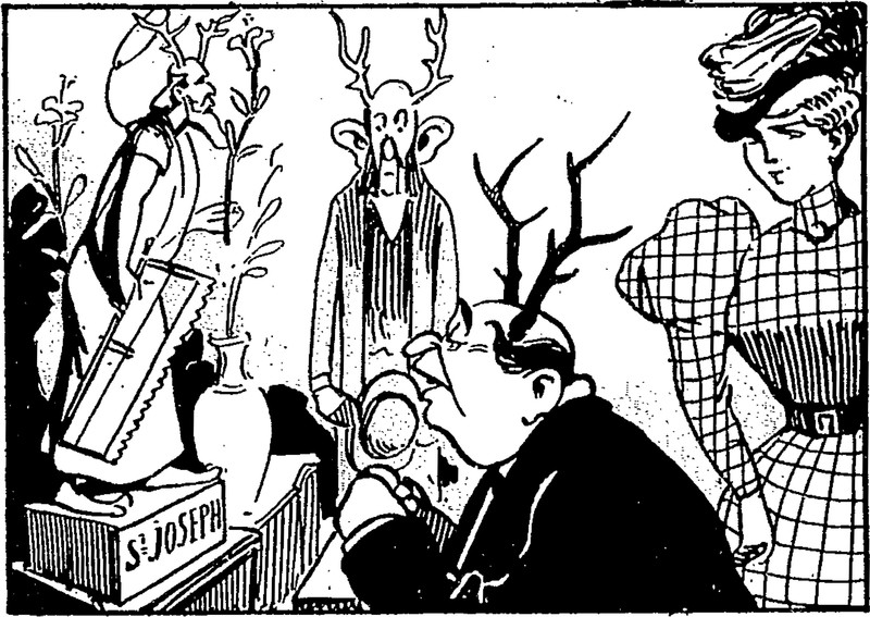 Not referring to this image in particular, but this anti-Roman Catholic magazine of the early 1900s was so over-the-top virulent as to seem genuinely evil in itself, ironically giving credence to the tenets of Catholicism that were meant to be lampooned. Also, it's fascinating to see that priests were depicted as womanizers and alcoholics, not as any of the things they're accused of today, which shows up how political power struggles are crafted according to the mores of their time. In a few decades from today, priests will be subjected to yet a different set of accusations, whatever seems most controversial then. And of course these sorts of heated sarcasms are never actually about anything philsophical, but rather greed for money and control to change hands. There's an age-old game, alright, but religion isn't even in the ballpark.