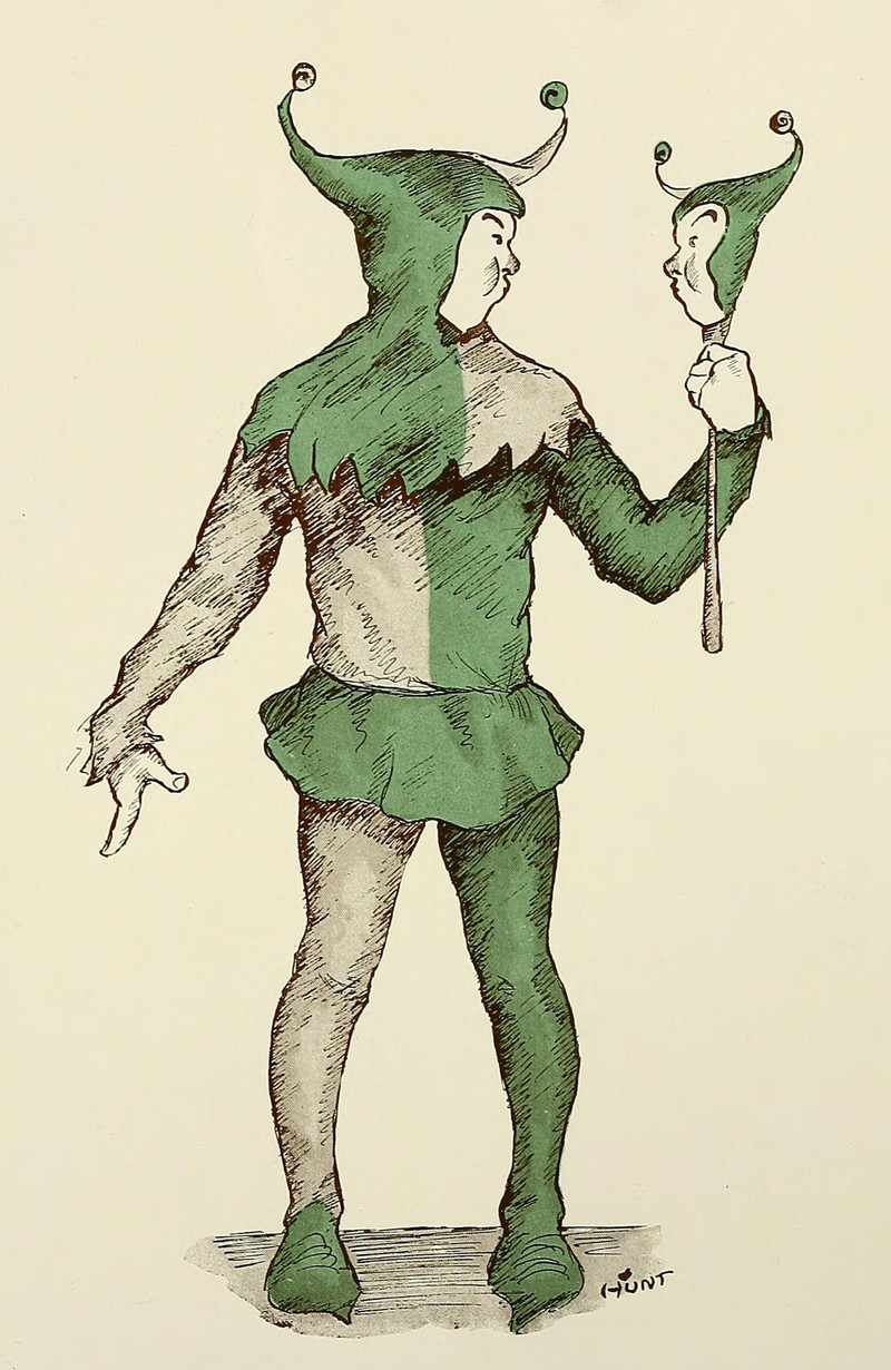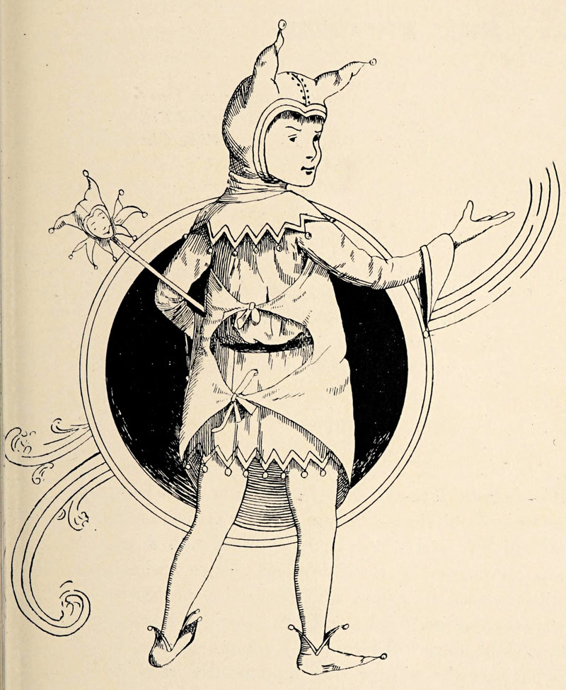 #vintage illustration #jester #marotte