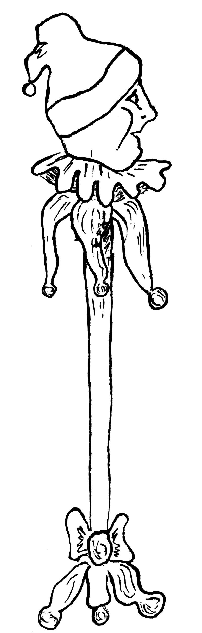 A full-sized head on the jester's marotte.  From the University of Minnesota's 1921 yearbook.