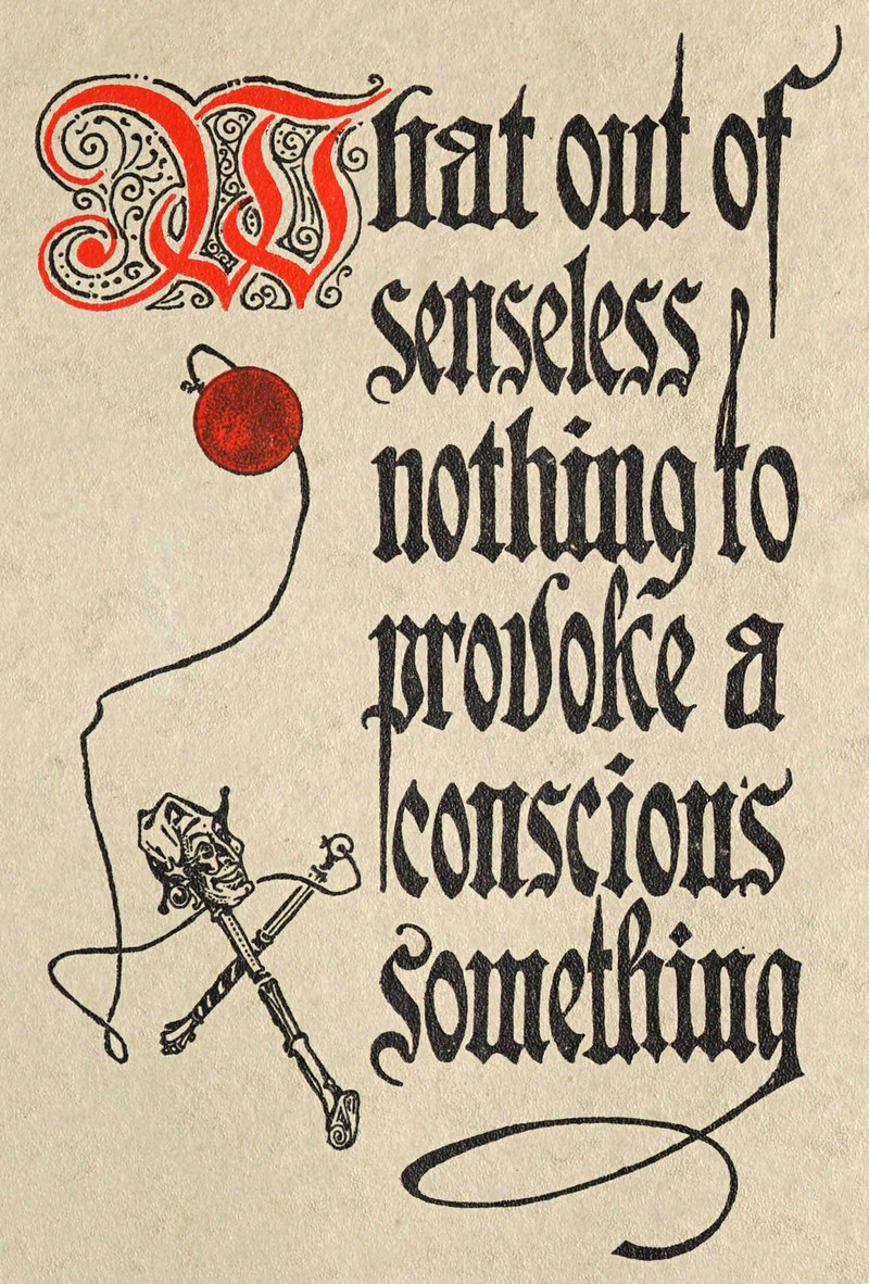 ""What[!] out of senseless nothing to provoke a conscious something" (Omar Khayyam).  From Oberlin College's 1910 yearbook.