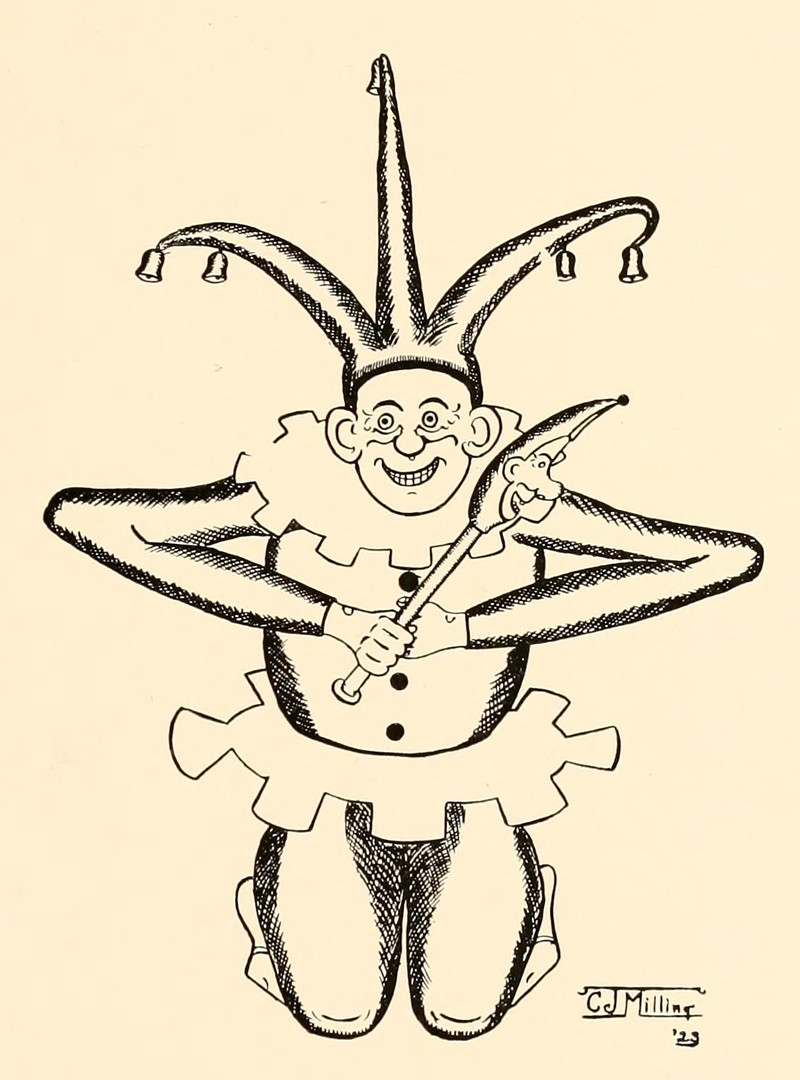 #vintage illustration #jester #vintage yearbook #yearbook #marotte