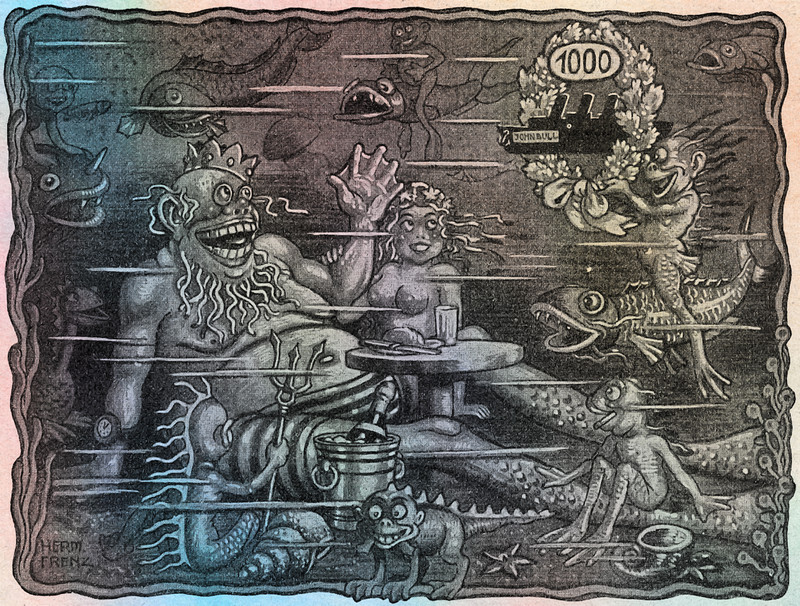 Here we learn that King Neptune wears slippers. From Jugend, 1905.
