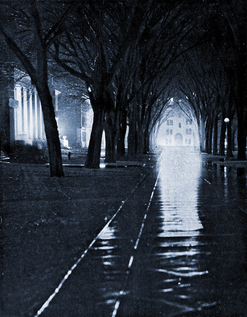 A glowing tree from the glowing forests that spread through old yearbooks.  From the University of North Carolina at Chapel Hill's 1966 yearbook.