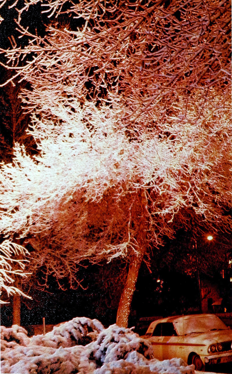 #vintage photo #winter #vintage yearbook #night photography #yearbook #glowing tree
