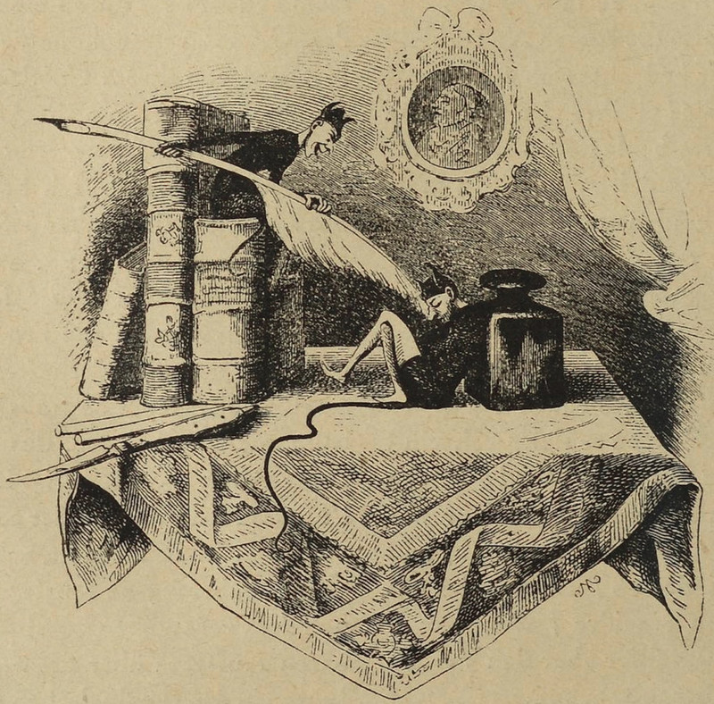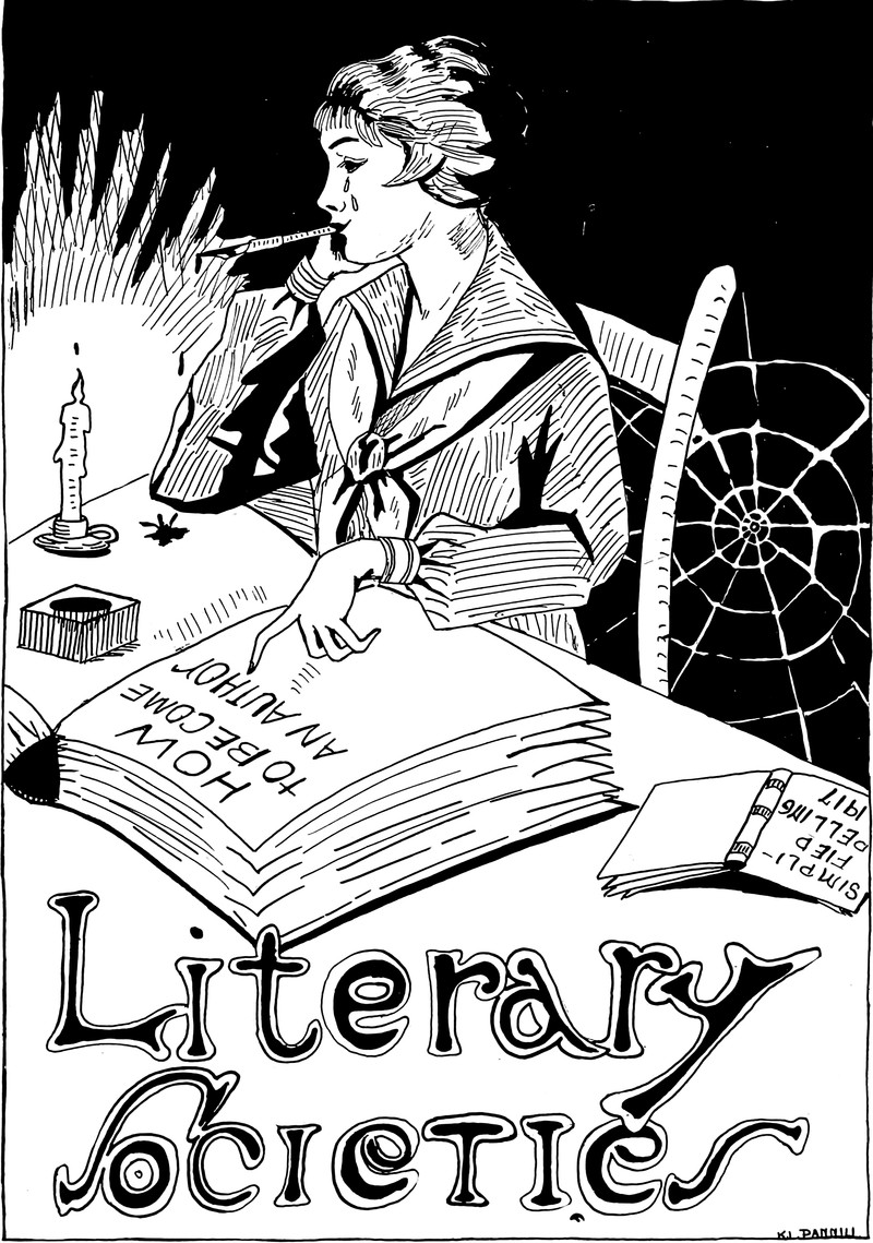 Crying tears and dripping ink -- it's all part of "how to become an author." From the State Normal School for Women's 1917 yearbook.