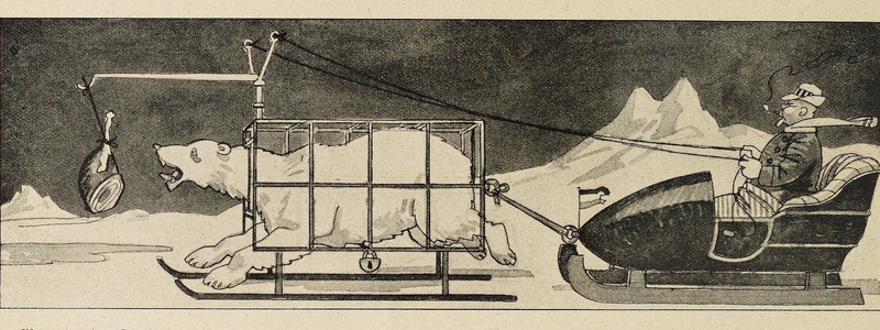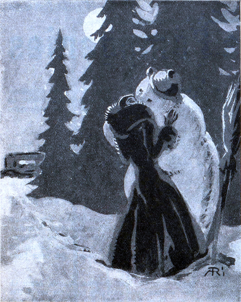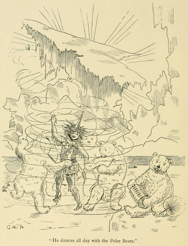 Polar bear versus wolf: which would you wager to win? From American Fairy Tales by Garrett Brown and illustrated by John Edward O'Keeffe, 1911.