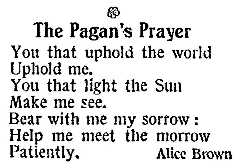 "A short life in the saddle, Lord! Not long life by the fire." —Louise Imogen Guiney, The Knight Errantjournal, 1892. See Strange Prayers for Strange Times.