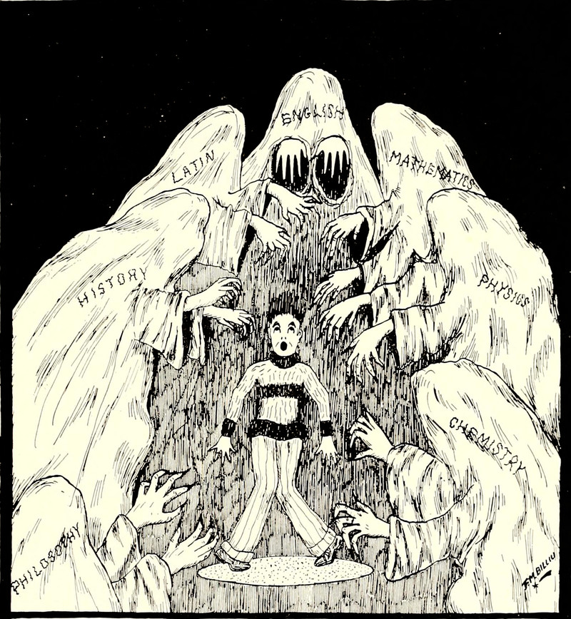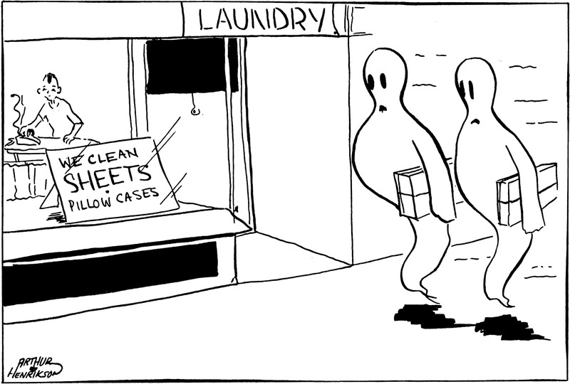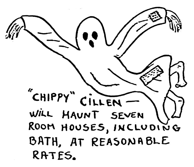 Revealed: ghosts like to haunt big houses because, like sheets, they naturally spread out. From Panzer College's 1935 yearbook. See Of Feeding & Caring For Sheet Ghosts.