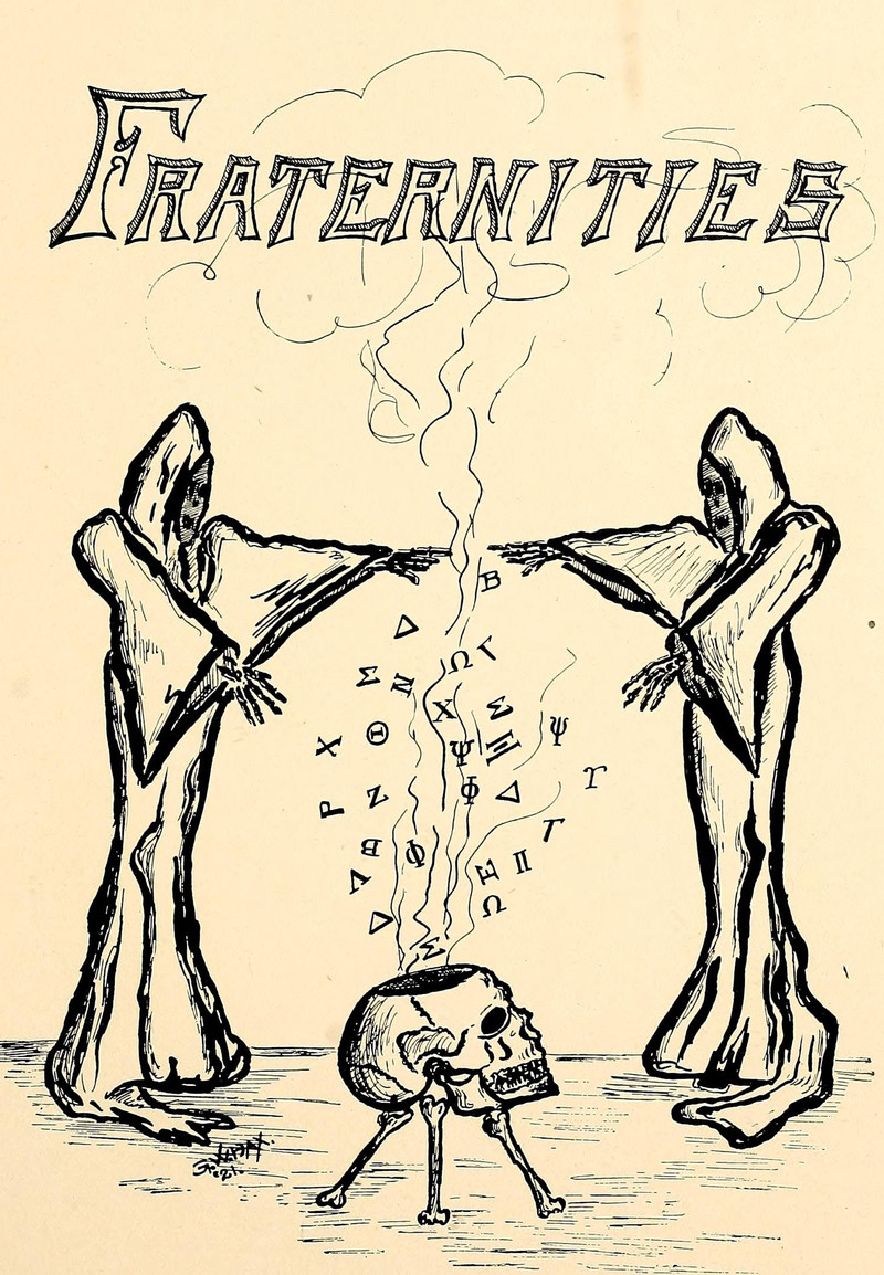 #vintage illustration #skull #fraternity #vintage yearbook #yearbook #secret society #1900s #illustration