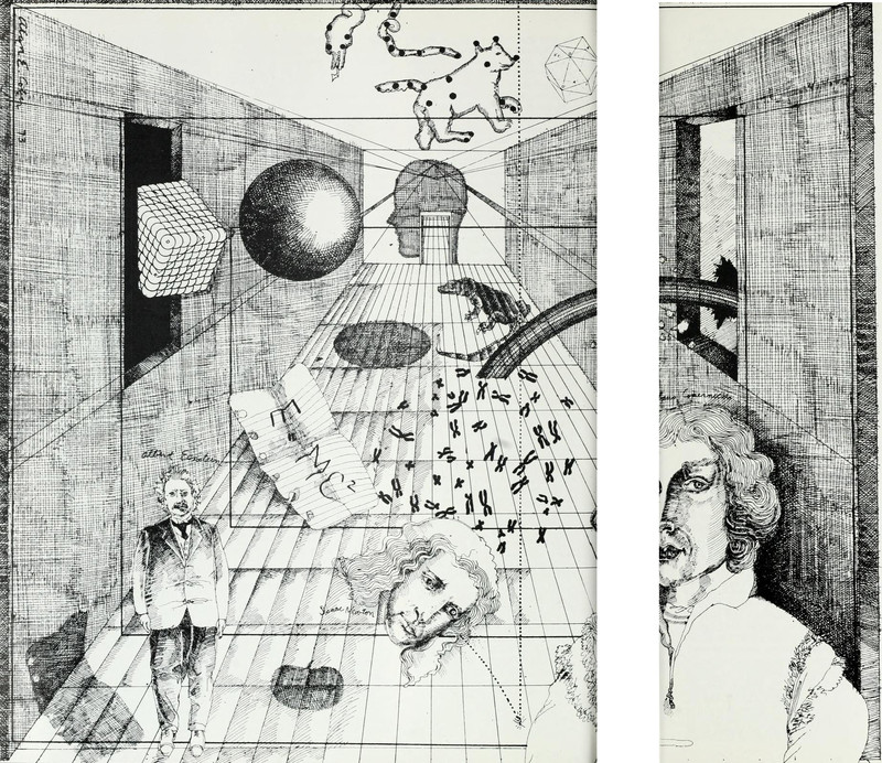 So we're reading surrealist painter Ithell Colquhoun's enigmantic novel Goose of Hermogenes and were delighted to encounter the Hermetic secret of drawing a straight line all the way to the horizon. Before revealing that, here's the novel's official description: "The heroine of this story (described only as 'I') is compelled to visit a mysterious uncle who turns out to be a black magician who lords over a kind of Prospero's Island that exists out of time and space. Startled by his bizarre behavior and odd nocturnal movements, she eventually learns that he is searching for the philosopher's stone. When his sinister attentions fall upon the priceless jewel heirloom in her possession, bewilderment turns into stark terror and she realizes she must find a way off the island. An esoteric dreamworld fantasy composed of uncorrelated scenes and imagery mostly derived from medieval occult sources, Goose of Hermogenes might be described as a gothic novel, an occult picaresque, or a surrealist fantasy." (By the way, we disagree with the word "uncorrelated" in the description.) ( 50Watts has discussed the novel and author here.)